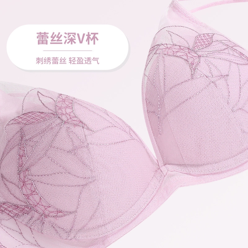 黛安芬专柜新款 1951 无钢圈性感深V蕾丝呼吸泡棉杯小胸聚拢文胸11