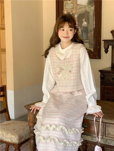 蛋包饭餐厅 粉色立体爱心少女马夹背心秋冬外搭马甲设计感小众