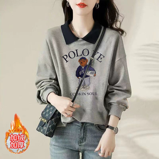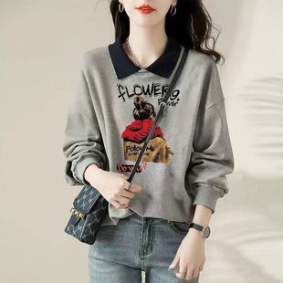 上衣显瘦洋气遮肉 假两件长袖 棉韩版 娃娃领翻领卫衣女2023秋冬爆款