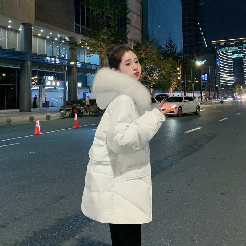 2025新款 仿狐狸毛领插肩袖 外套 森马羽绒服女冬90绒子长款 陈都灵