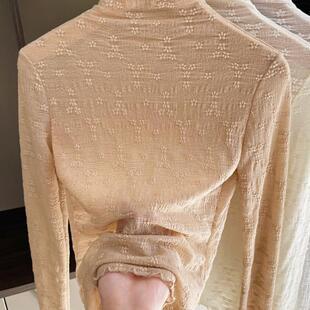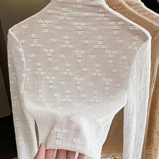 洋气长袖 新款 薄纱镂空网纱内搭上衣 女2023春季 半高领蕾丝打底衫