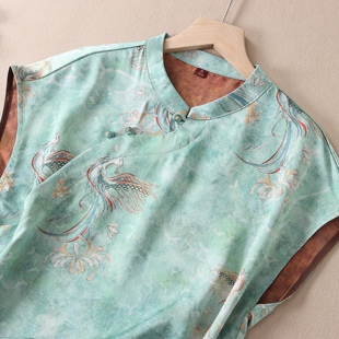 新中式 上衣 国风短袖 女夏斜襟仿香云纱宽松唐装 B820 衬衫 典雅富贵