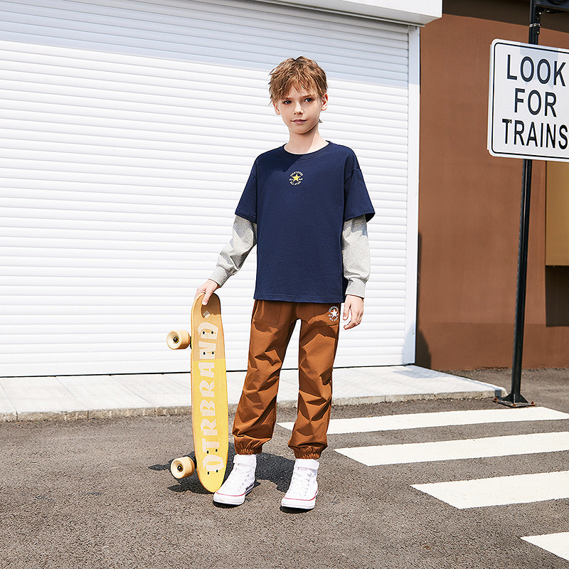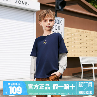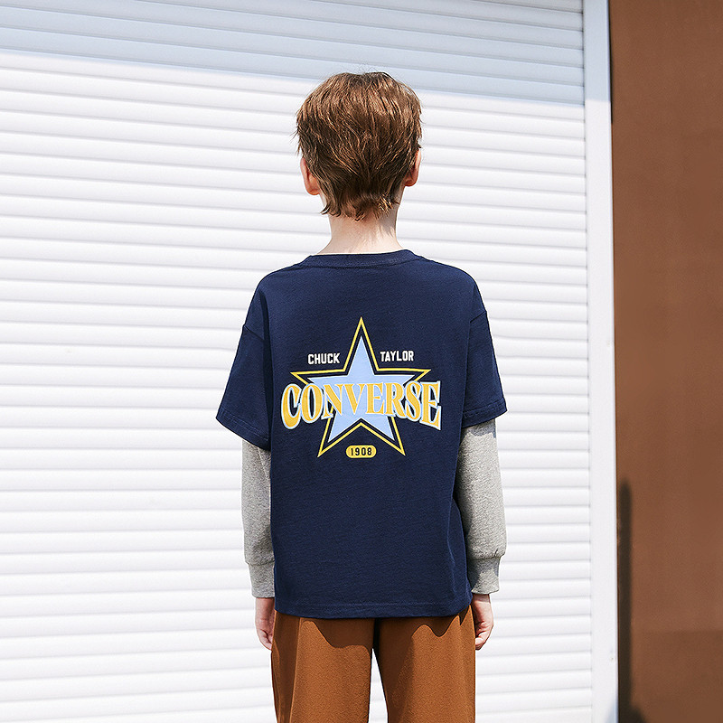 假两件大童秋装 女童纯棉打底衫 T恤上衣2025新品 匡威儿童男童长袖