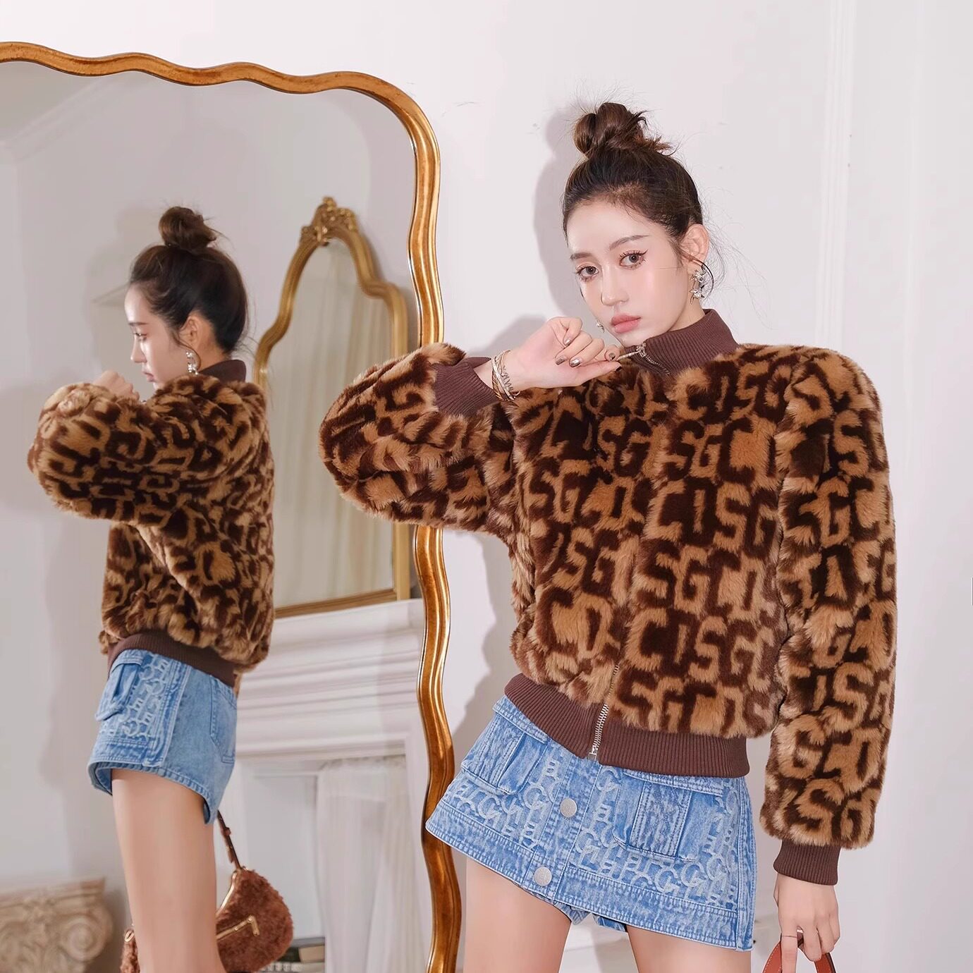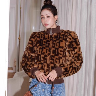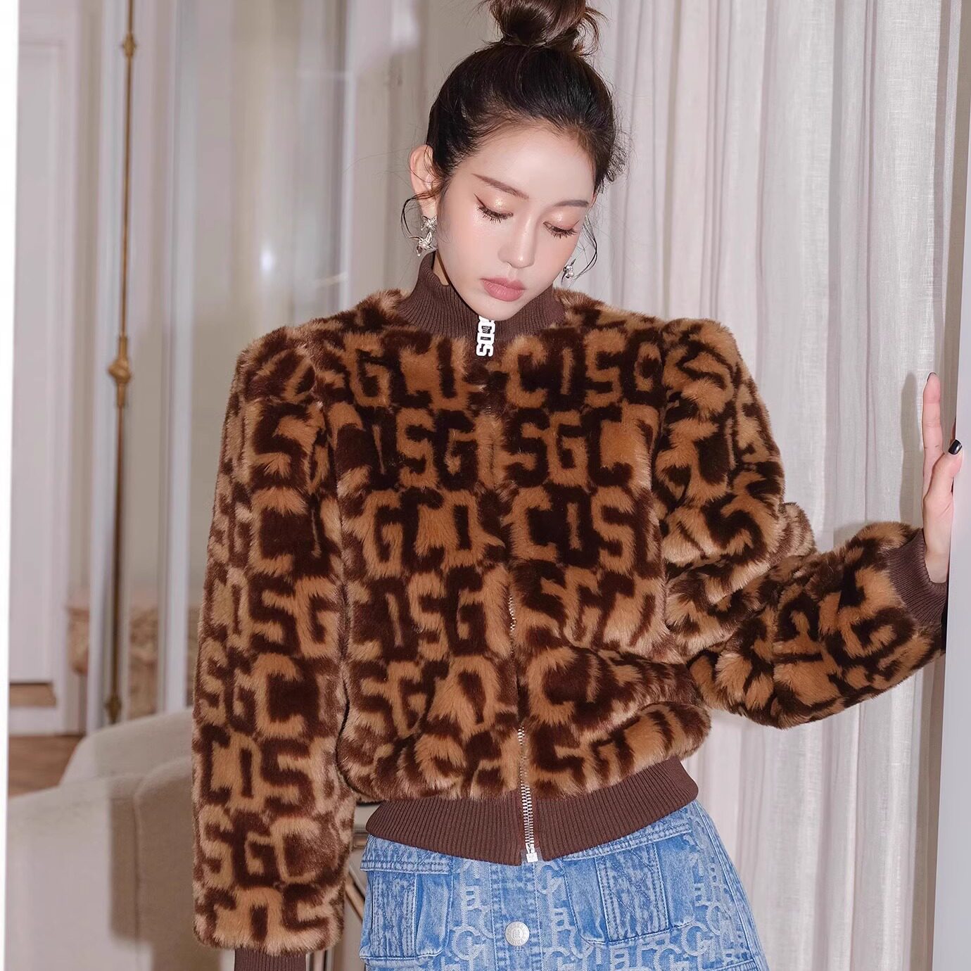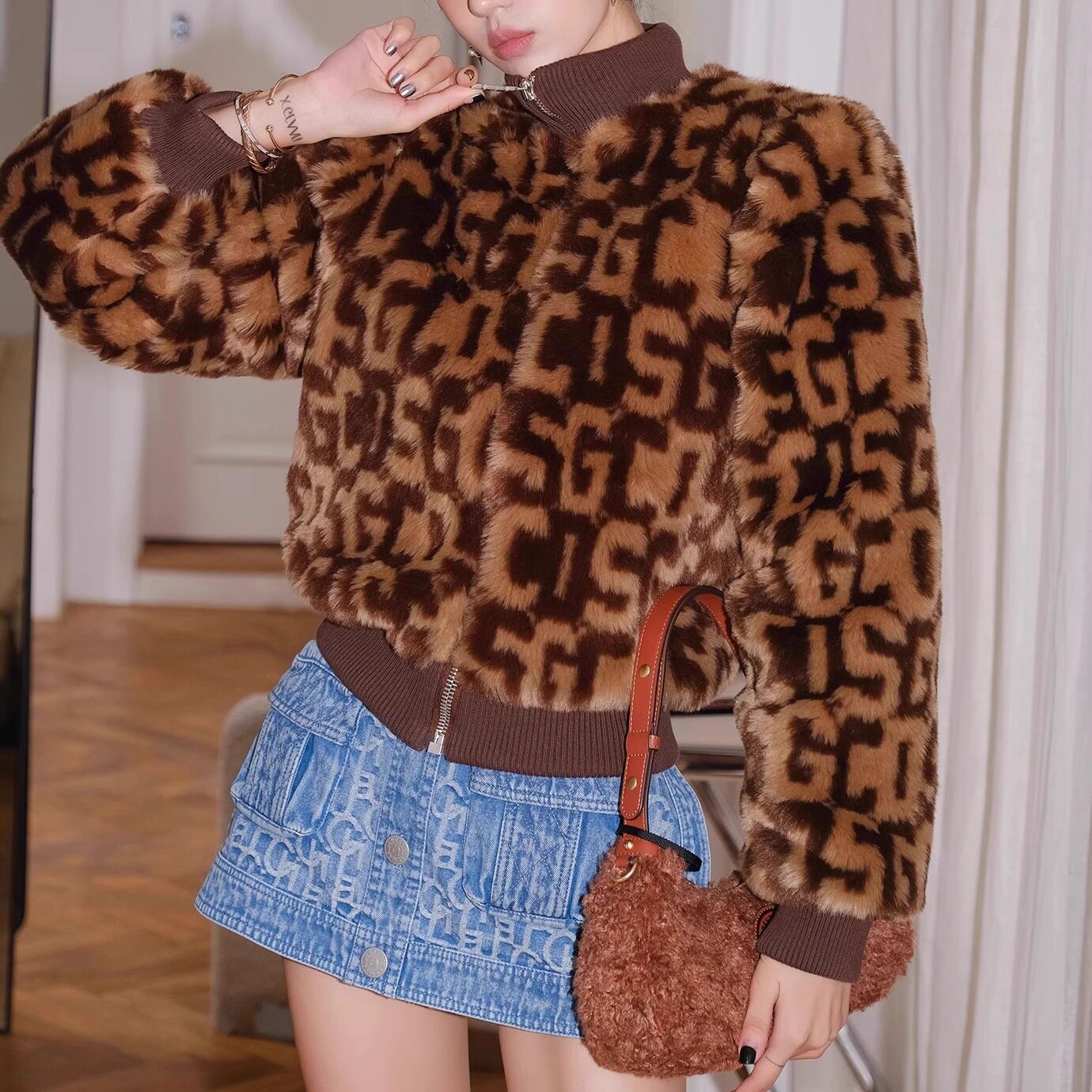 复古环保毛皮草满印LOGO辣妹短外套大衣 GCDS 4折现货