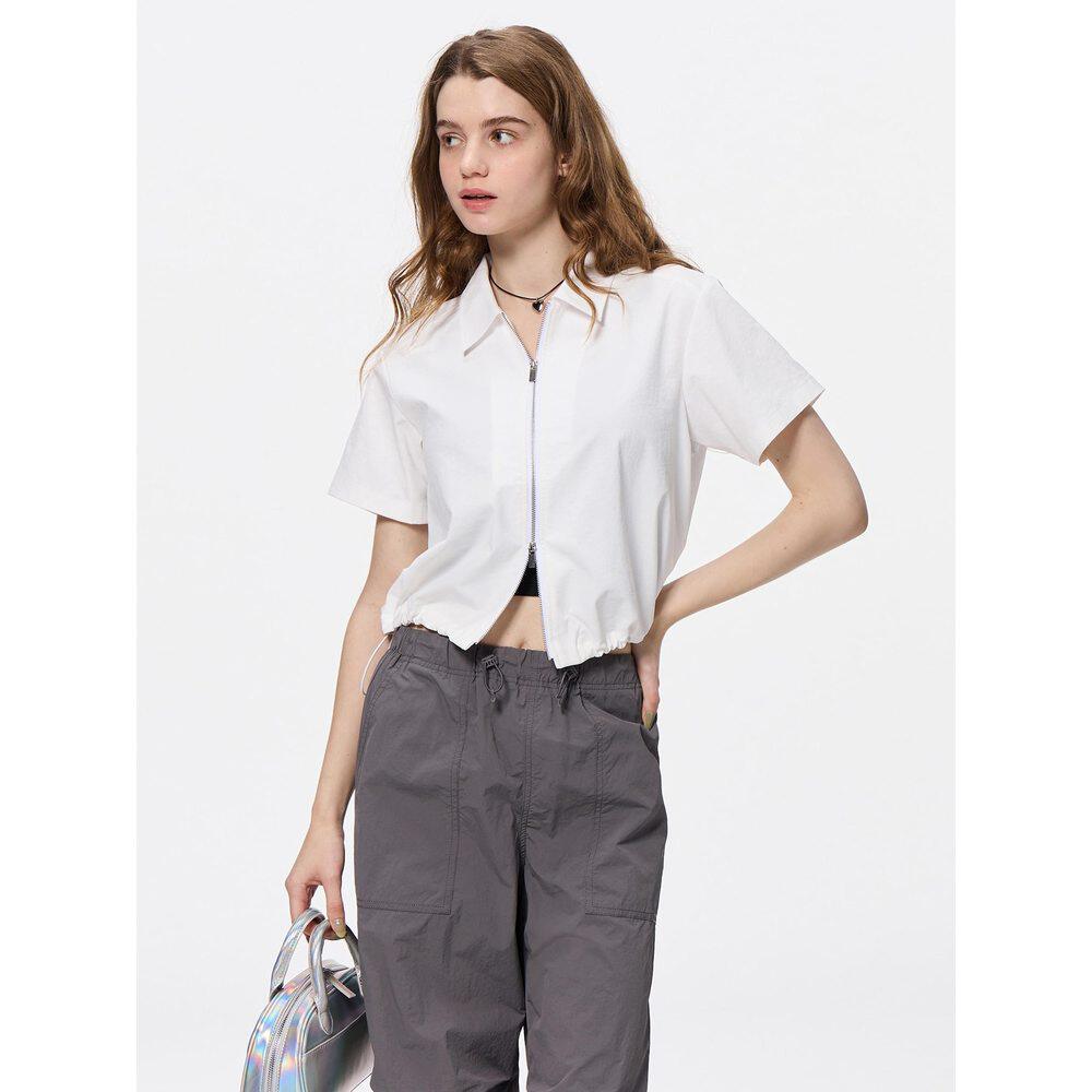 前拉链衬衫 35919 WOMEN 短袖 WHITE 日潮跑腿GU极优 OFF