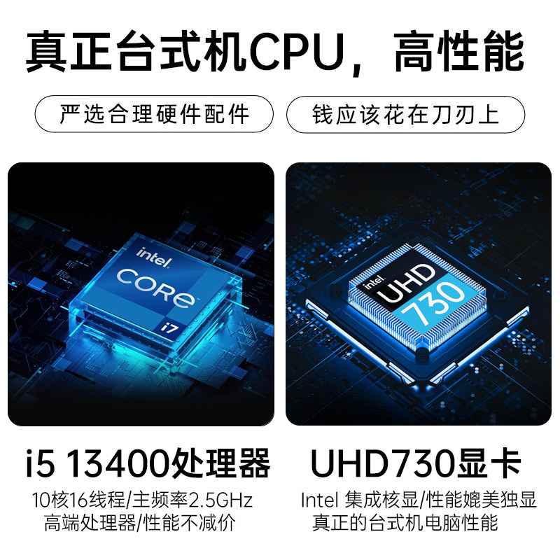 12400 13400 电脑主机家用游戏设计DIY台式 intel 商务办公电脑 NVME台式 酷睿I5 M.2 全新13代14代 14400
