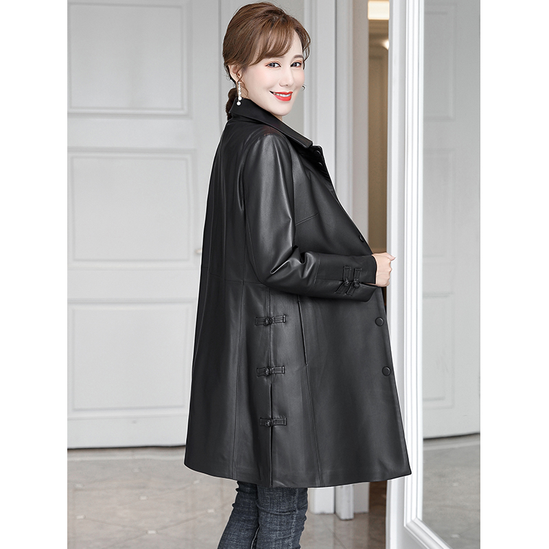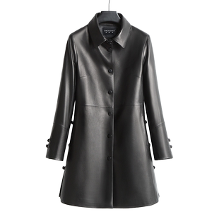 修身 海宁真皮皮衣女中长款 大码 新款 绵羊皮风衣妈妈外套潮 2022秋季