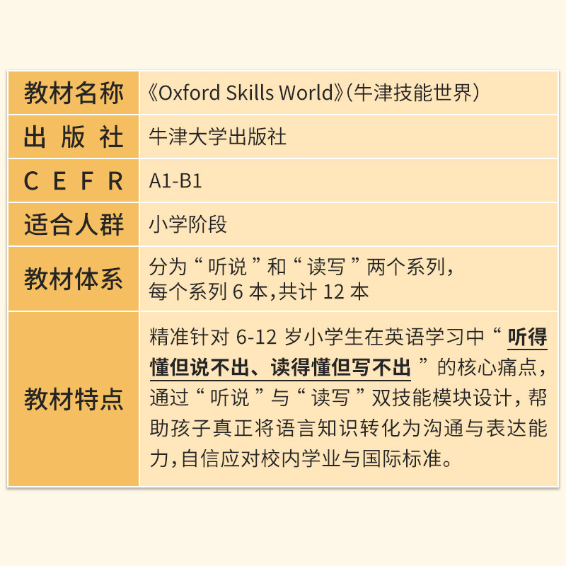 Skills 6级别学生书小学英语牛津技能世界牛津出版 World 社寒暑假短期课程教材专项听力口语练习 听力口语阅读写作专项 Oxford
