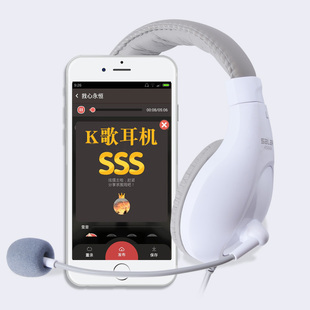 长麦全民K歌唱歌录音专用耳机头戴式 有线手机电脑通用大耳麦带麦