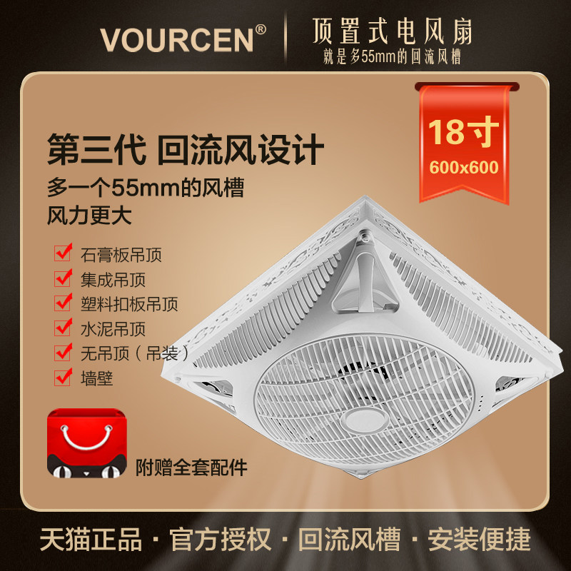 600x600 石膏板矿棉板电风扇集成吊顶天花商用静音遥控吸顶嵌入式