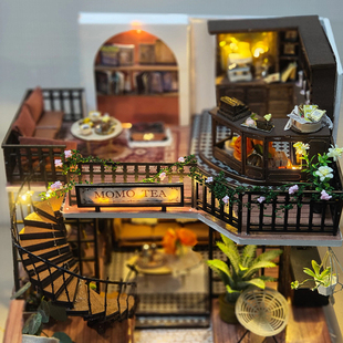 diy小屋复古风丛林么么茶手工制作房子建筑模型拼装 玩具生日礼物