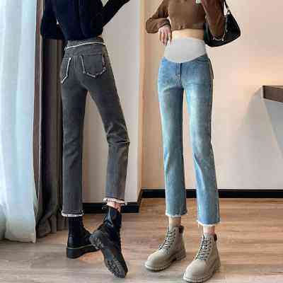 子春秋款 毛边牛仔裤 外穿直筒烟管裤 打底大码 小个子春季 厂家孕妇裤