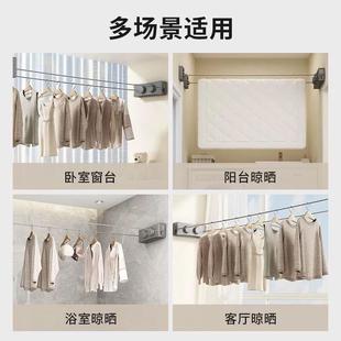 晒晾衣架阳台家用墙上固定侧装 伸缩免打孔一整根晾衣杆飘窗台神器