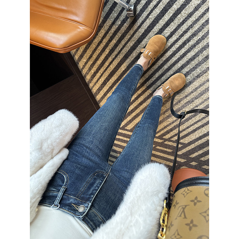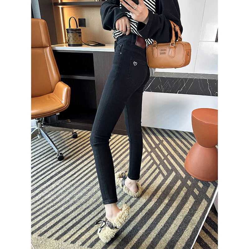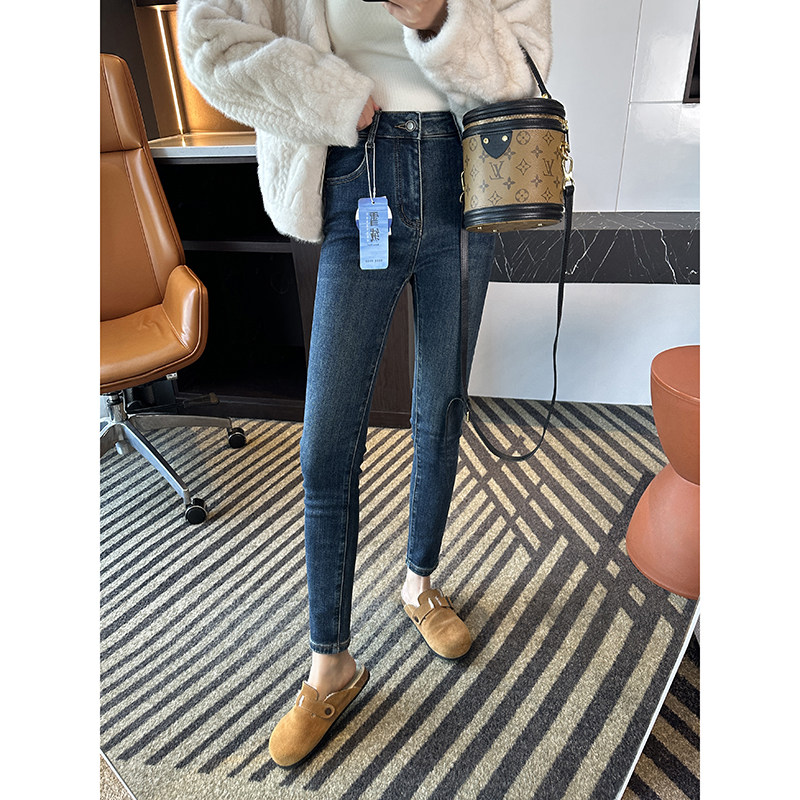 女高腰显瘦九分铅笔裤 难以拒绝 加绒小脚牛仔裤 弹力修身 靴裤
