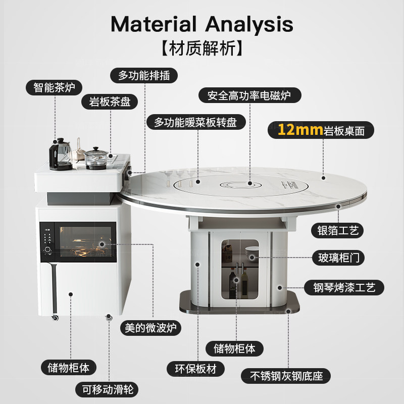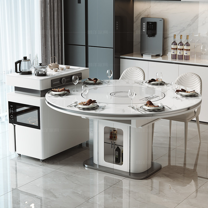 国家补贴岛台餐桌一体家用伸缩现代多功能方圆两用岩板餐桌椅组合