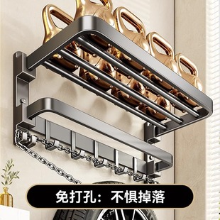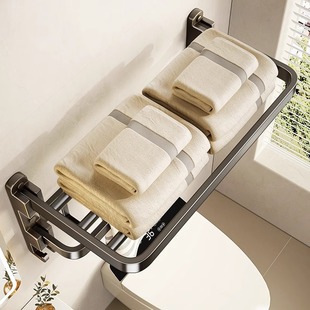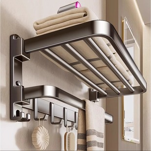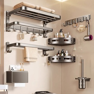 潜水艇枪灰毛巾架卫生间免打孔浴室置物架高端可折叠挂浴巾架套装