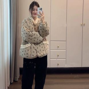 单件上衣加绒夹棉加厚雪尔绒韩系小碎花棉袄棉衣可外穿外套睡衣家