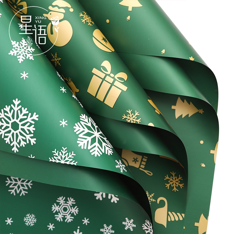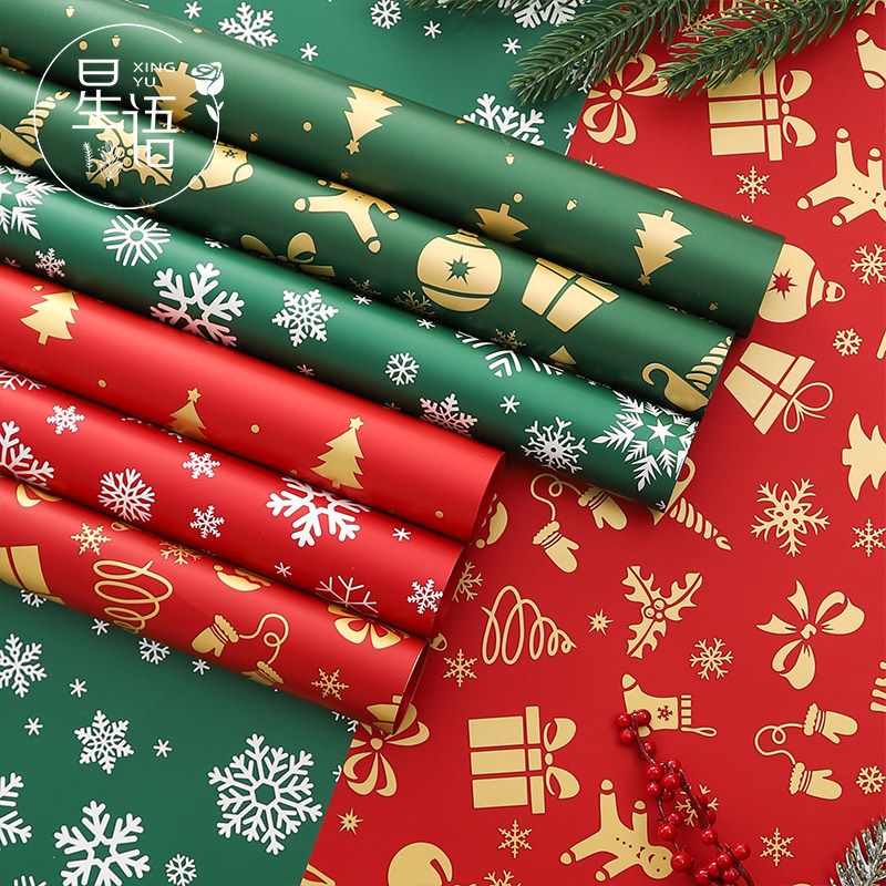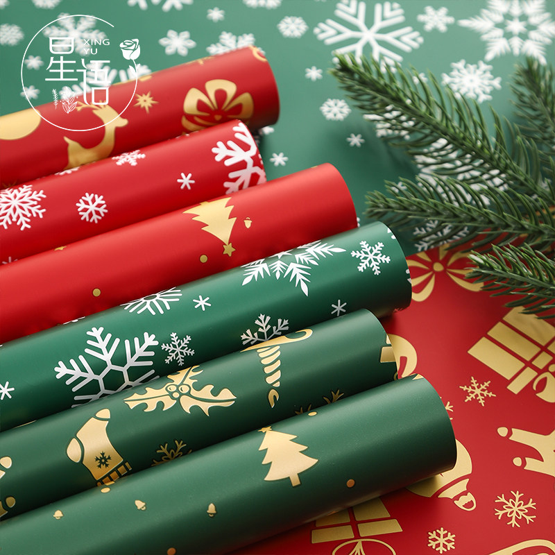 材料 纸花艺包装 圣诞节包装 纸防水花束包花纸平安夜苹果礼品包装