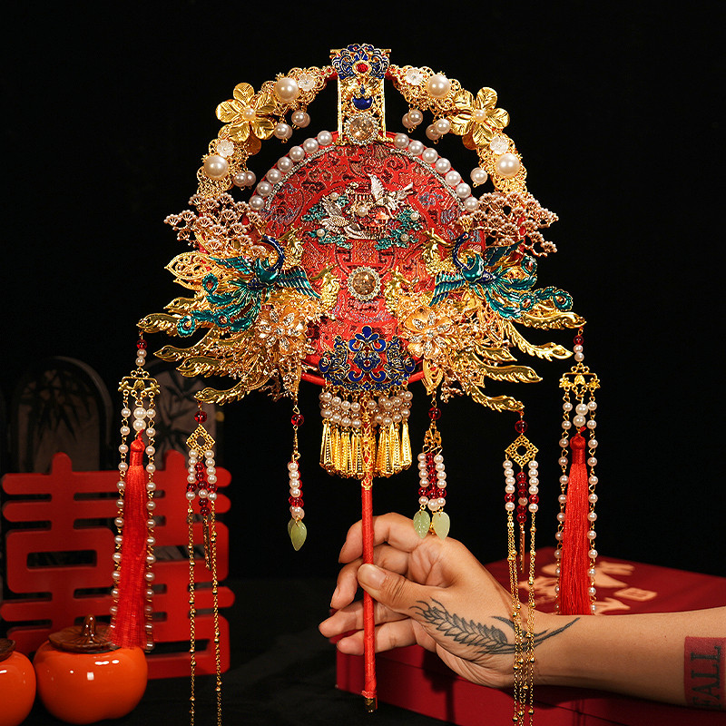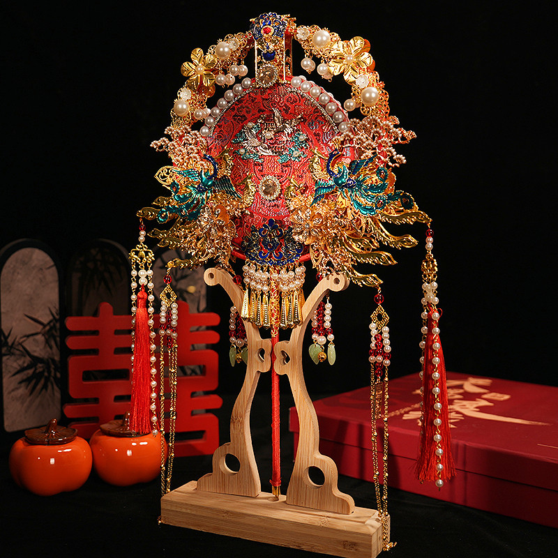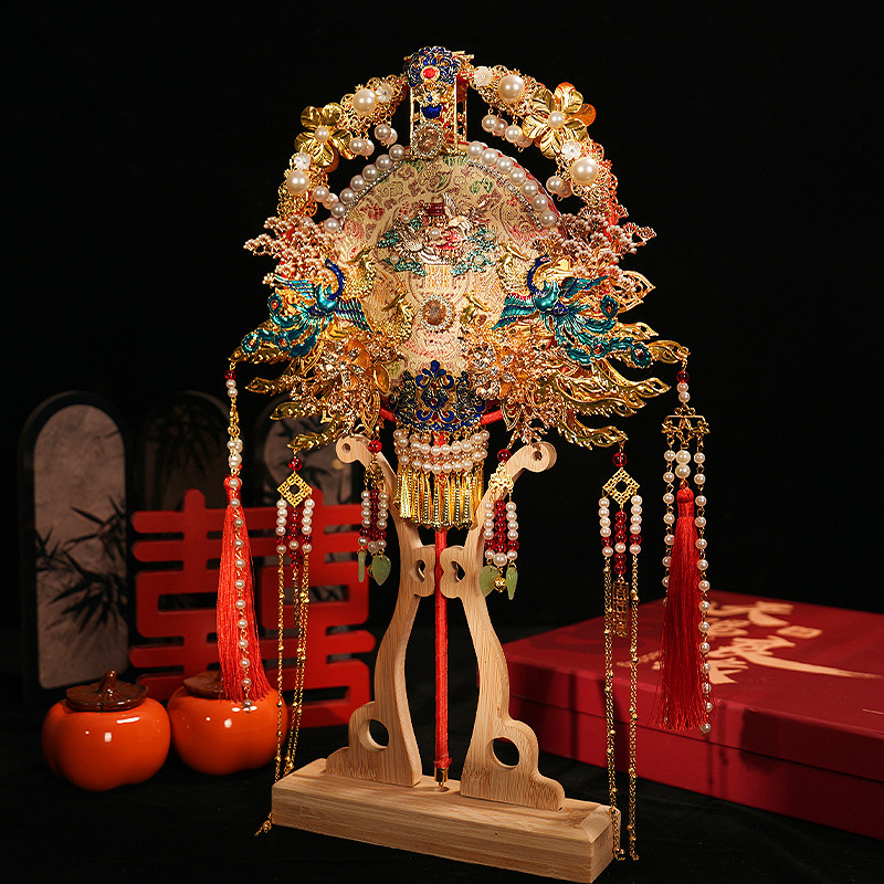 山泮工艺折扇出嫁新娘接亲结婚团扇中式 婚礼喜扇立体折扇diy材料