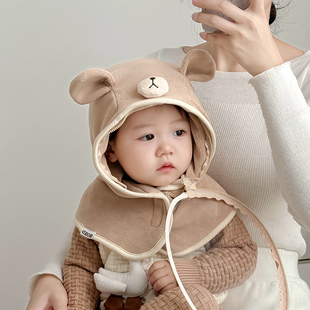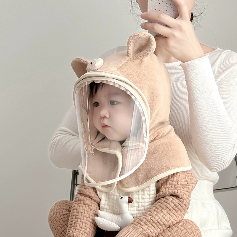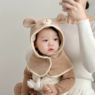 儿童帽子围脖一体帽冬季 可爱卡通保暖挡风防寒面罩男女宝宝护耳帽