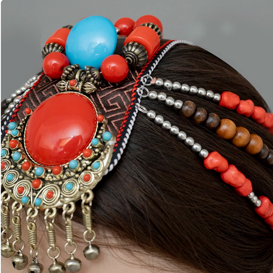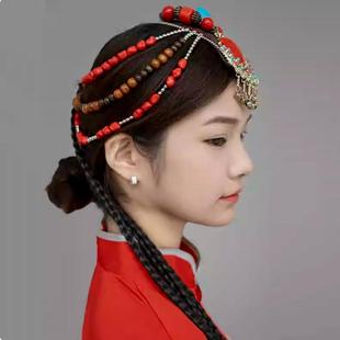 蒙古族串珠DIY手工民族小莹老师头饰夏辉同款 藏族发饰小辫子配饰