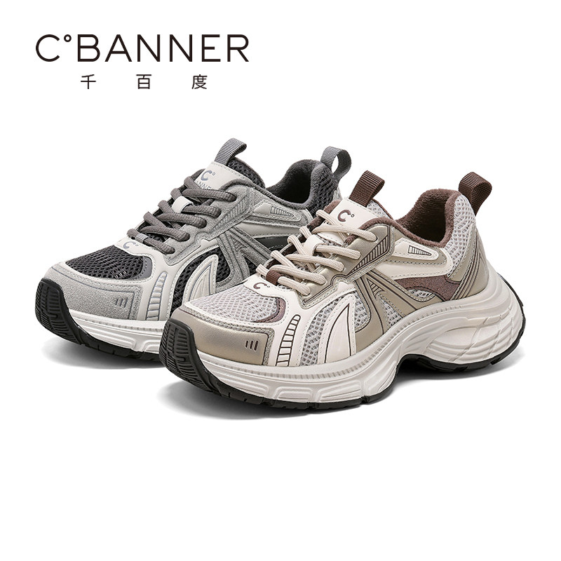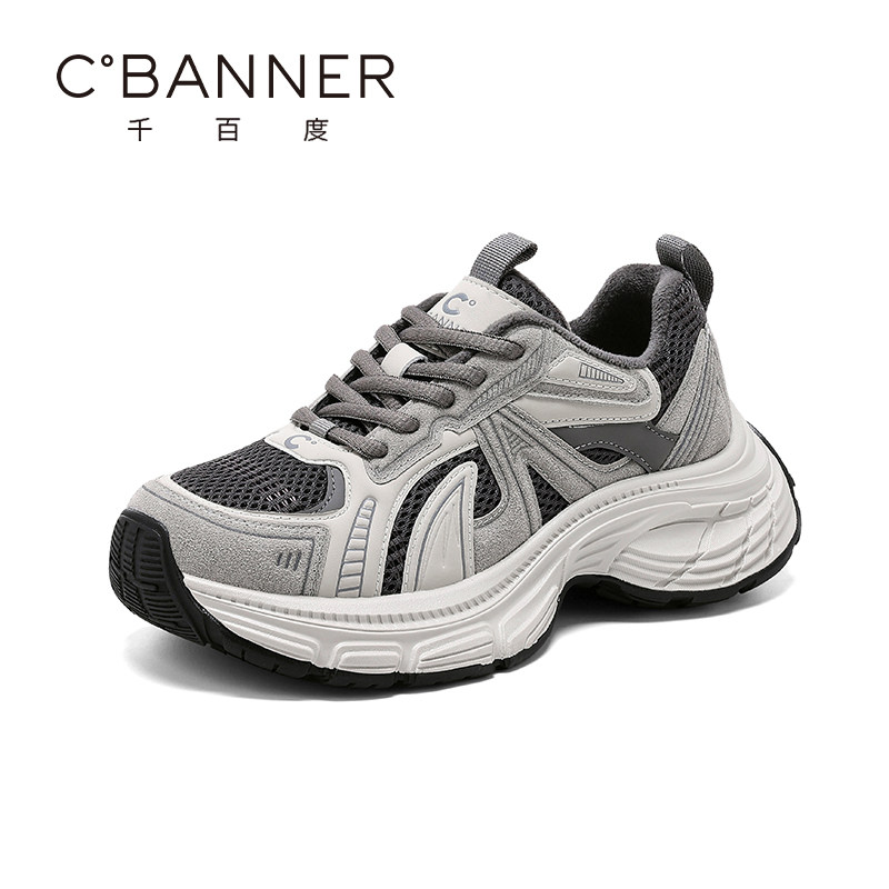 百丽蓝鲸灰色老爹鞋 厚底高帮加绒运动鞋 女鞋 棉鞋 预 新款 张凌赫同款