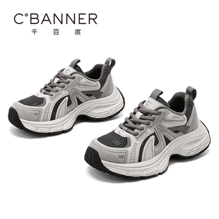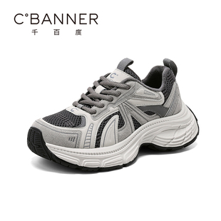 女款 厚底加绒增高休闲运动鞋 2025爆款 新款 秋冬季 达芙妮灰色老爹鞋