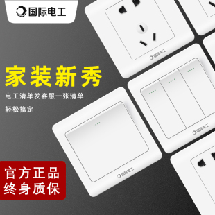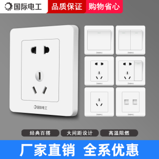 国际电工开关插座面板86型五孔家用5孔七孔斜五孔墙壁插座二三插