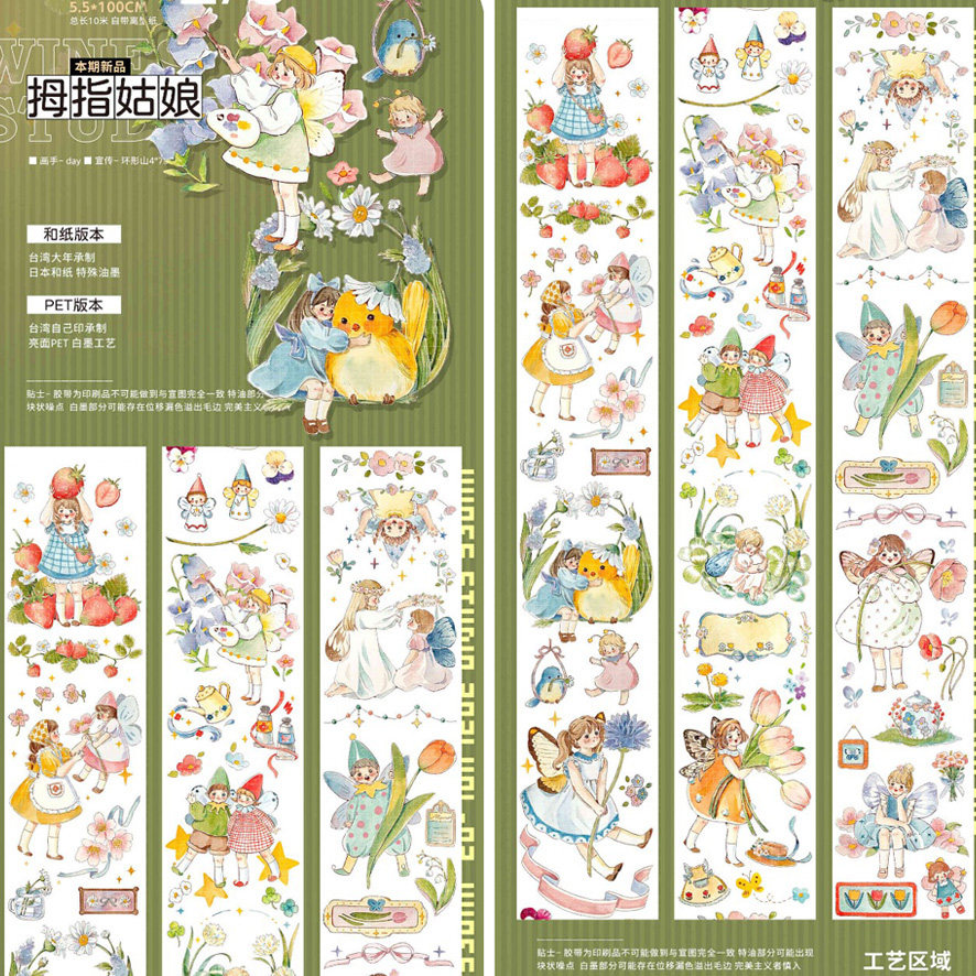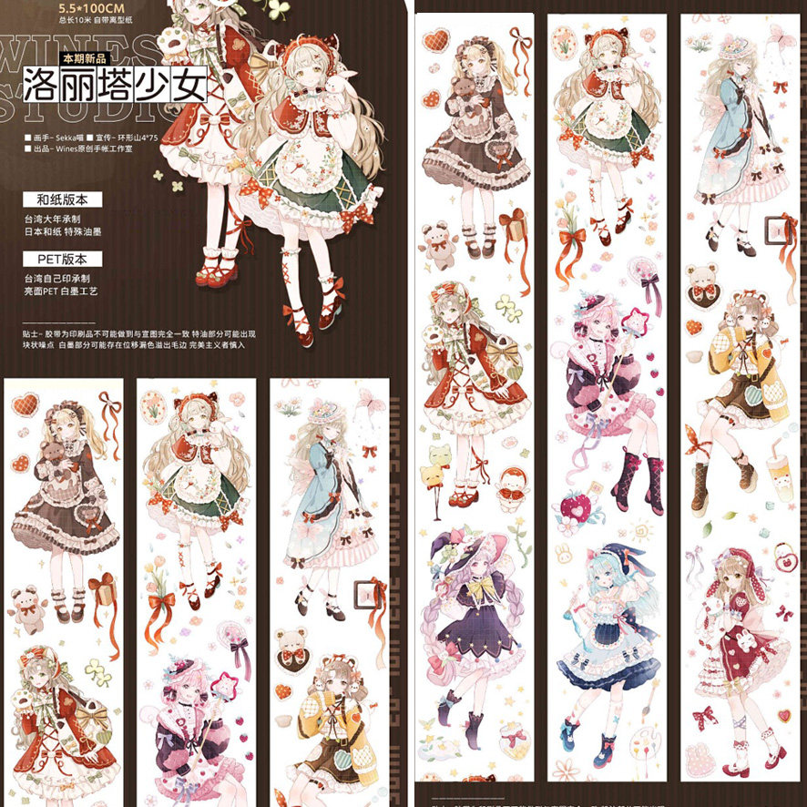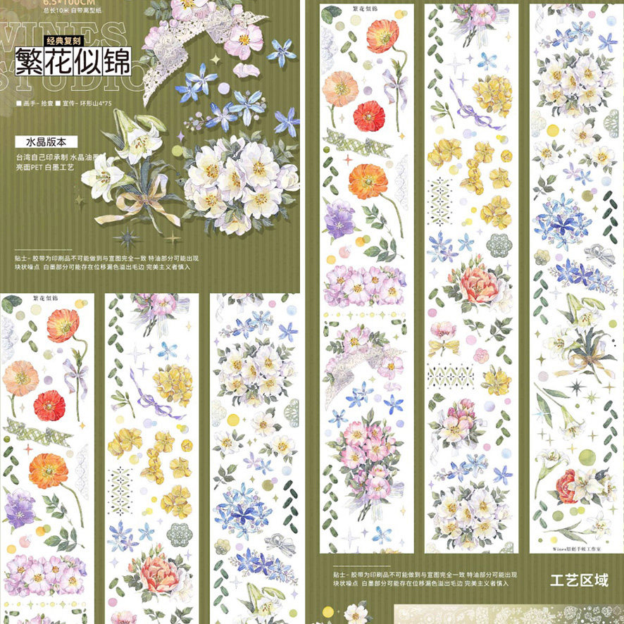 WINES分装 花屋少女 台产胶带PET水晶镭射拼贴卡纸咕卡手帐花允