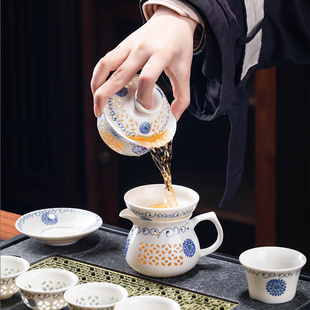 玲珑镂空蜂窝茶具套装 家用客厅陶瓷盖碗茶壶泡茶用品功夫茶杯组合
