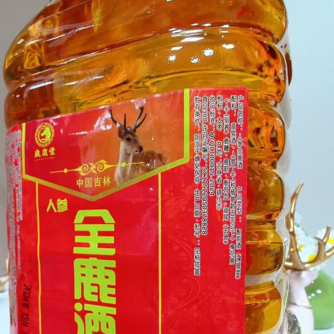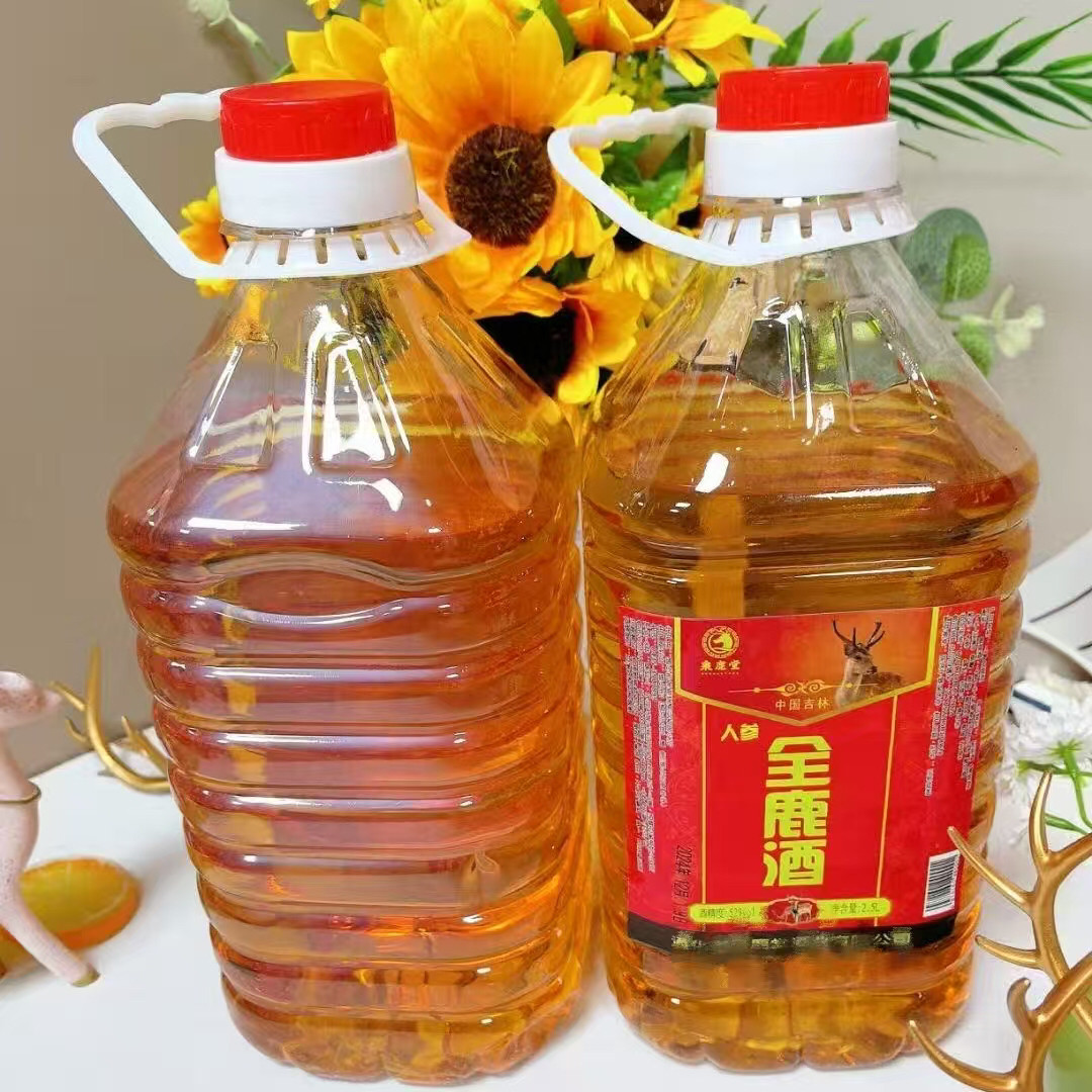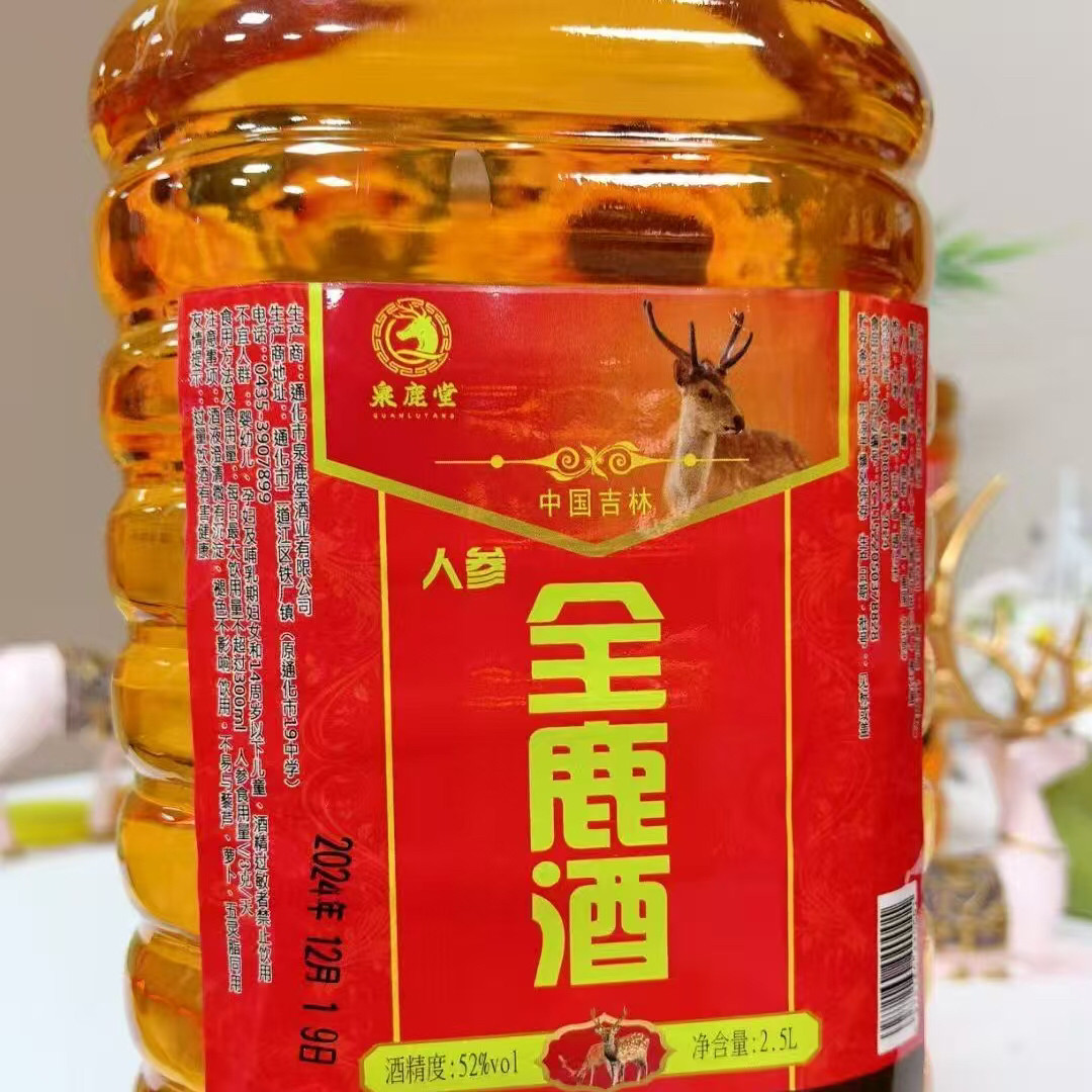 吉林梅花鹿茸血鹿鞭鹿尾巴酒全鹿酒52度约五斤 酒色金黄高粱酒 包邮
