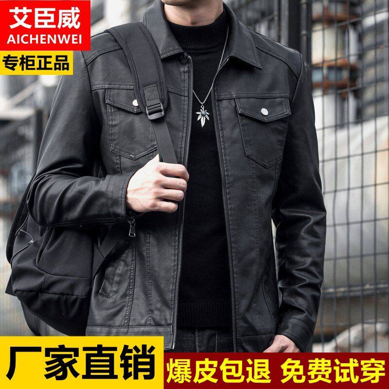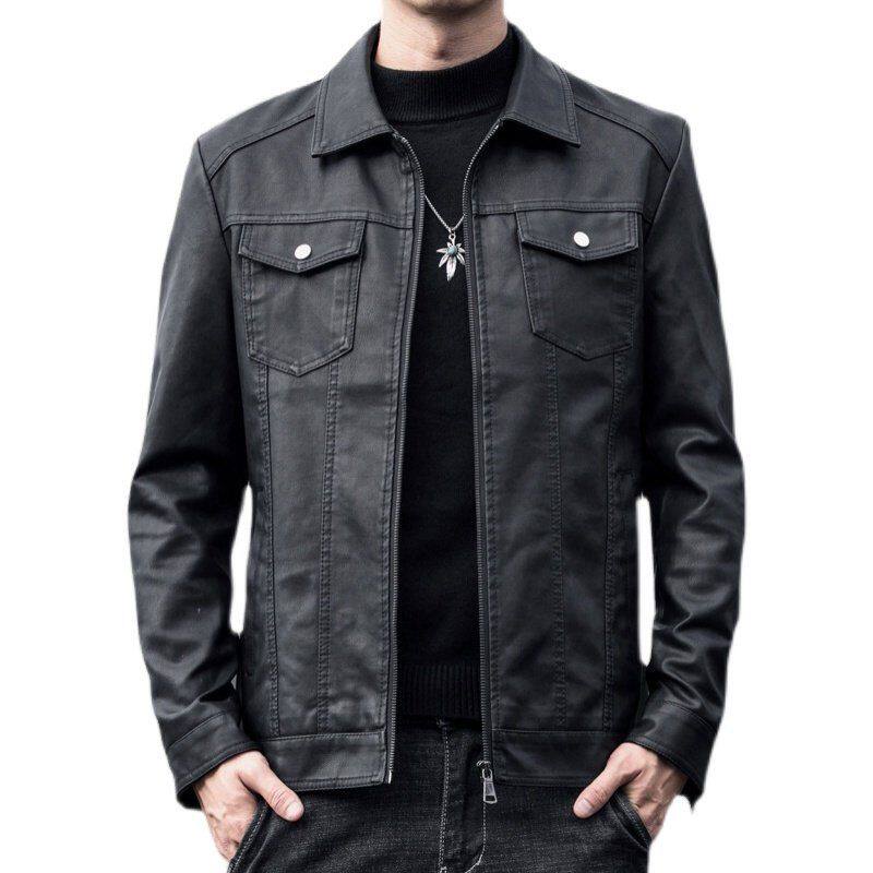 中年皮夹克宽松中老年机车服薄款 皮衣男士 春装 2022新款 外套 春秋款