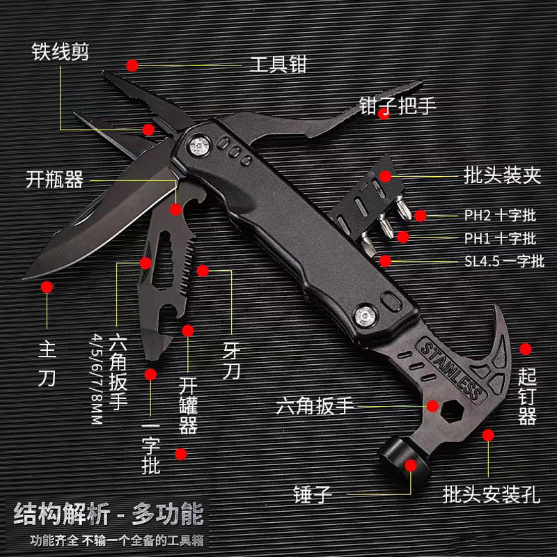 多功能钳锤户外扳手折叠钳子帐篷野外露营地钉锤生存刀应急工具锤