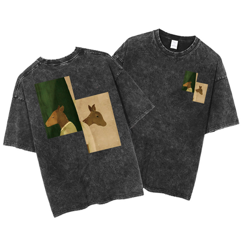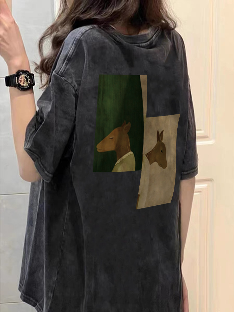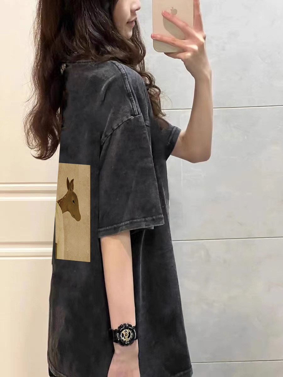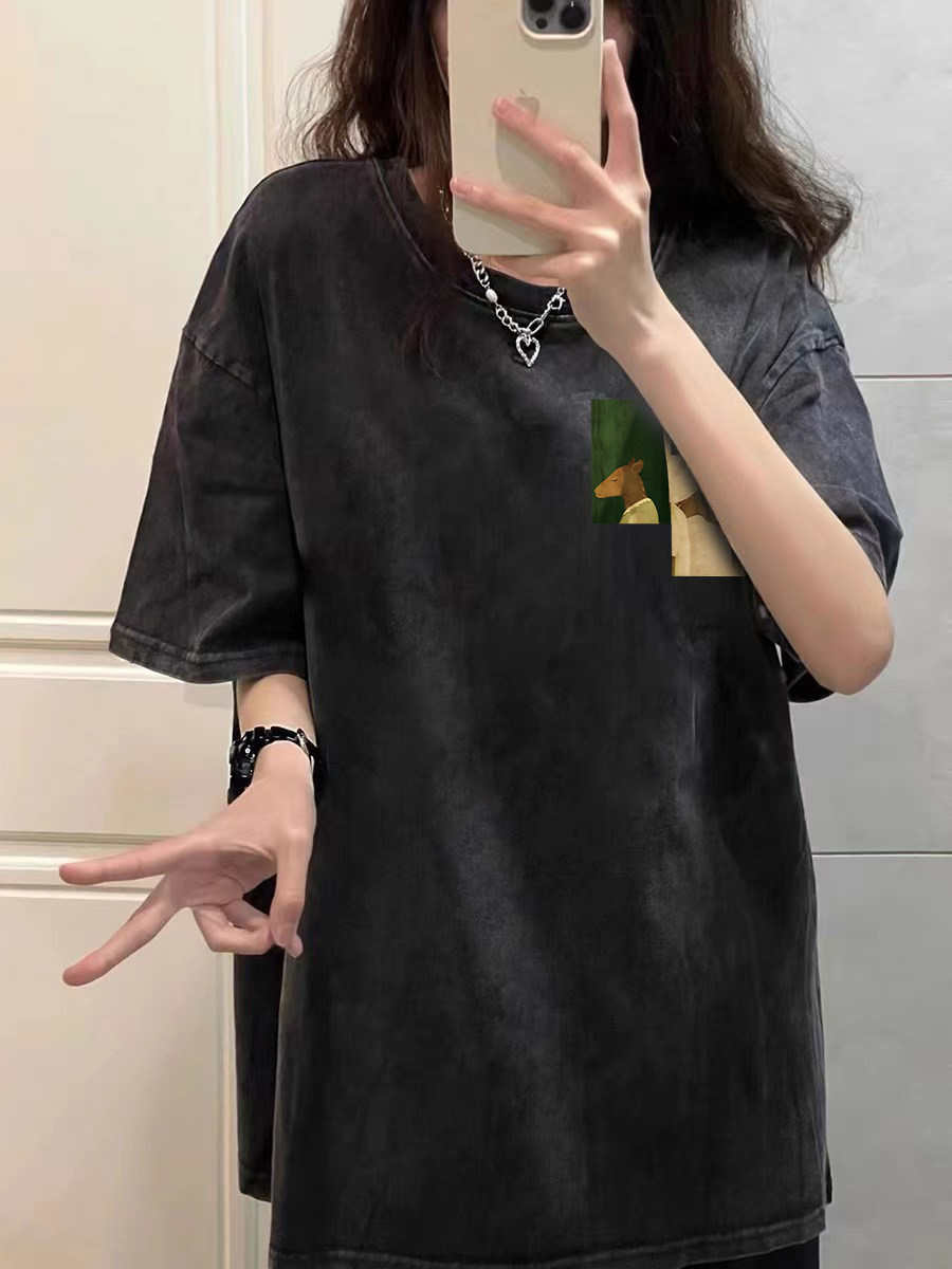 潮牌vintage小个子宽松高街上衣女水洗灰设计感小众大码 t恤夏 短袖