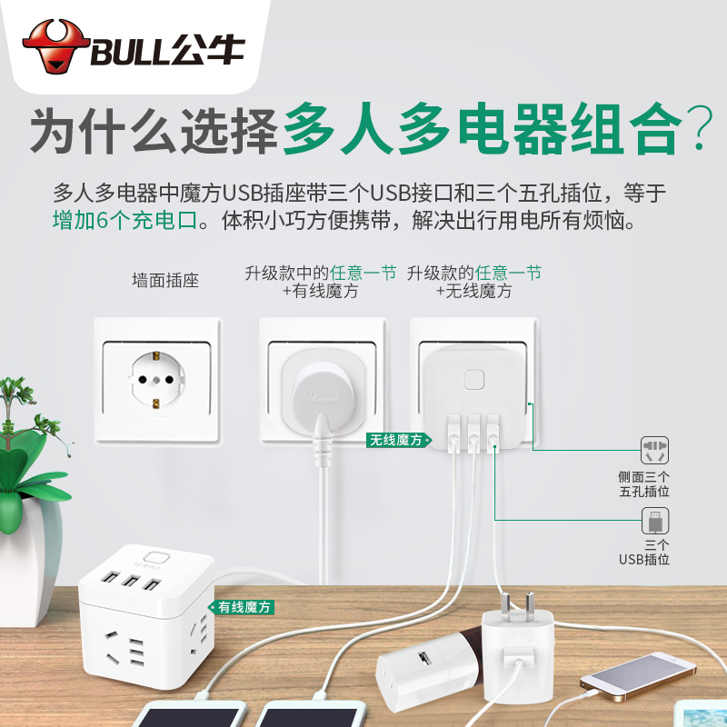 公牛插座扩展多功能插座转换器电源插头转换器转换插头插排多插位