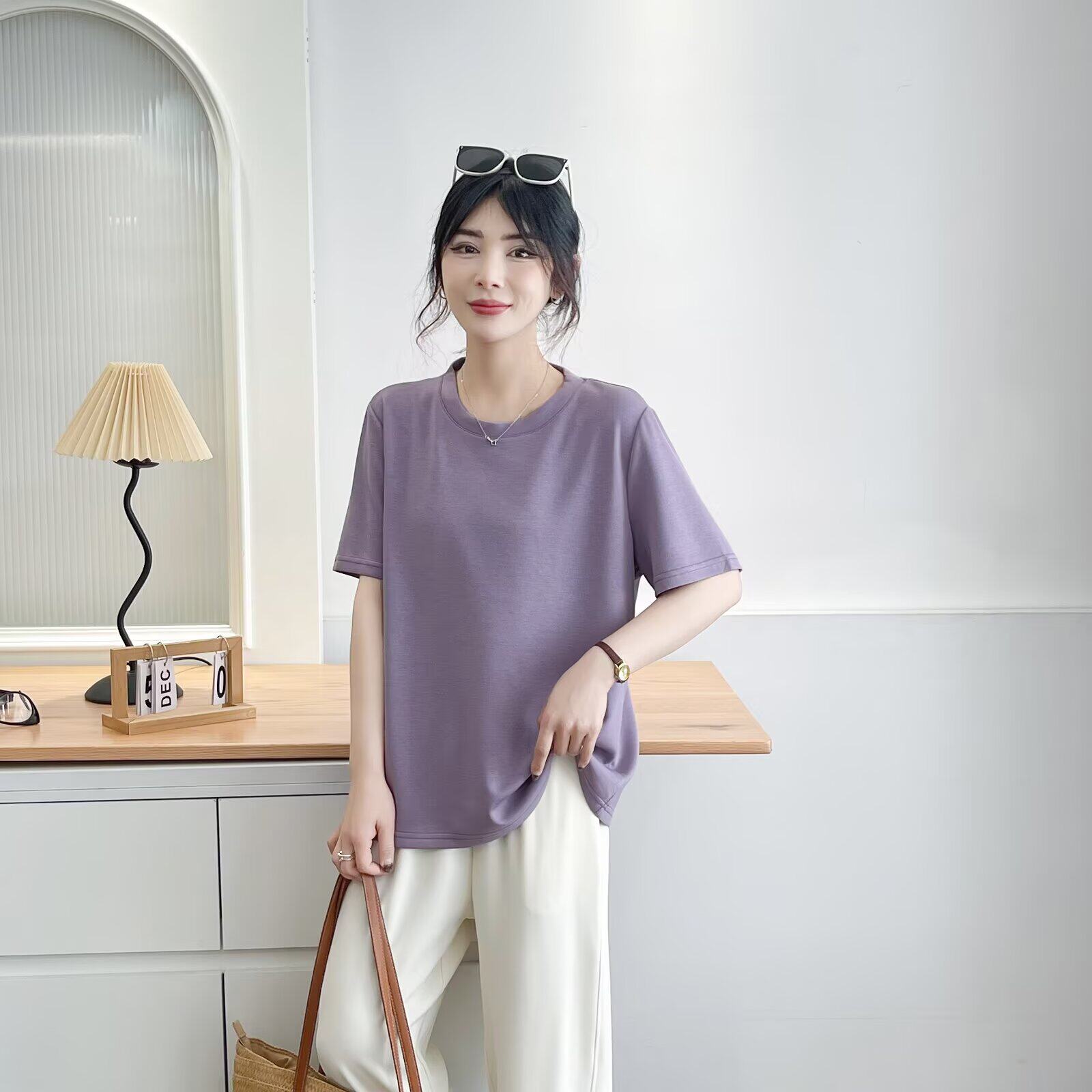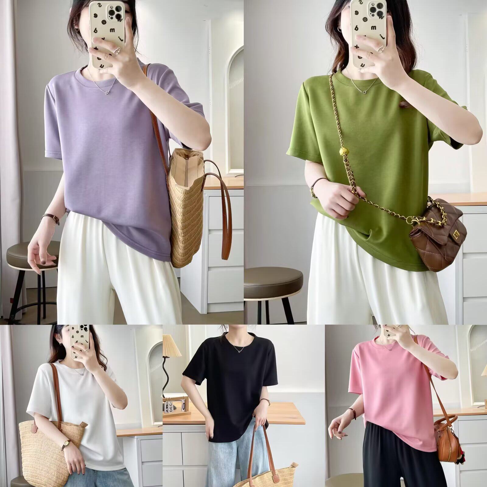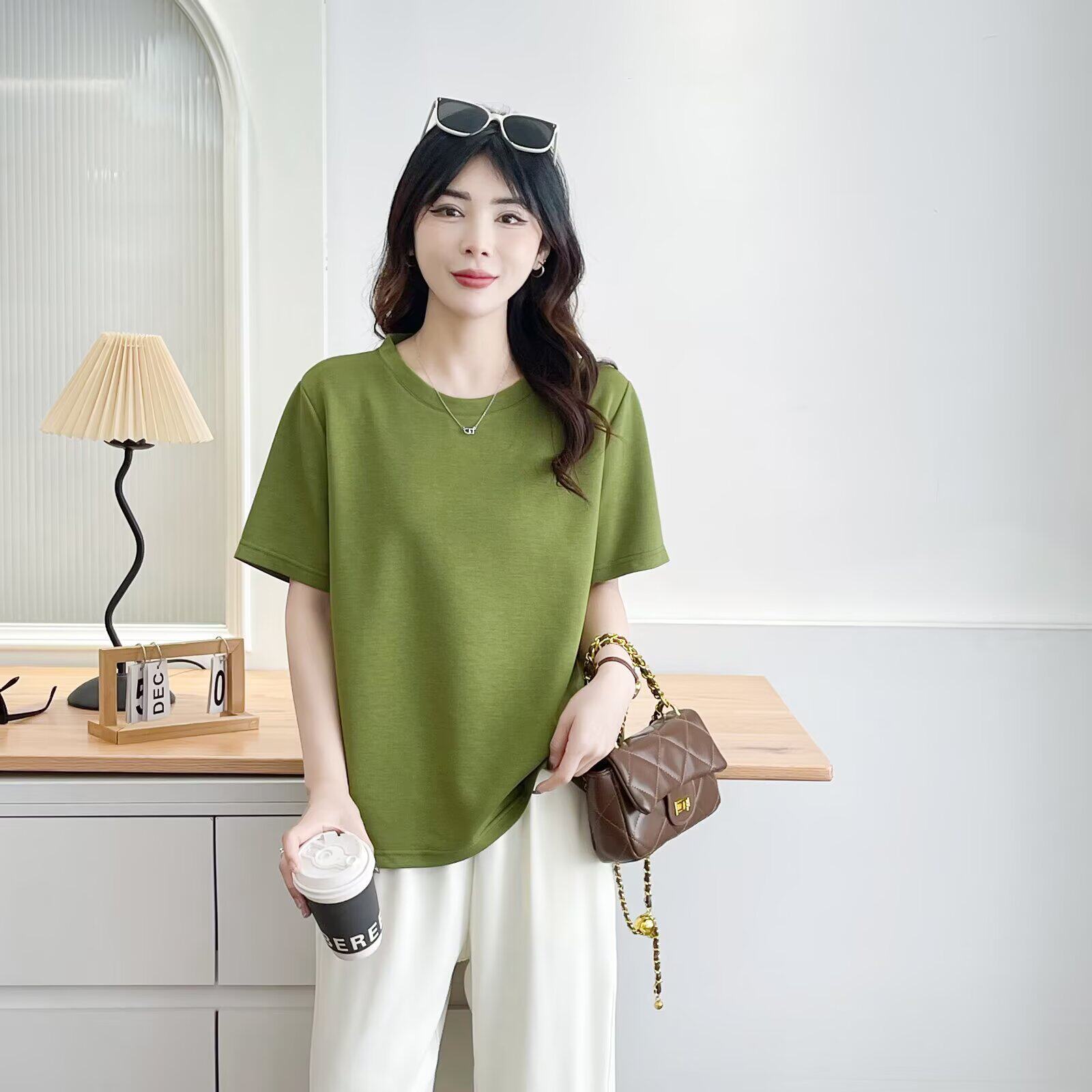 韩版 T恤大码 新款 女胖mm宽松圆领纯色短袖 简约上衣 套头衫 2025夏装