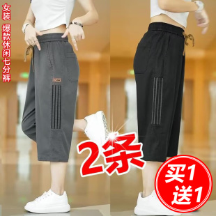 宽松休闲运动裤 薄款 大码 显瘦百搭中年显瘦工装 冰丝七分裤 裤 女夏季