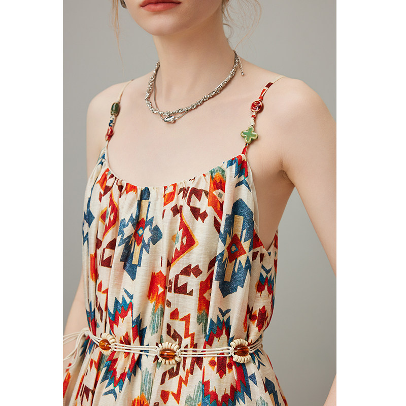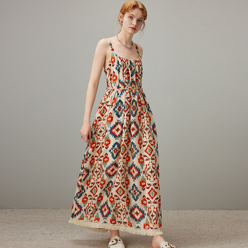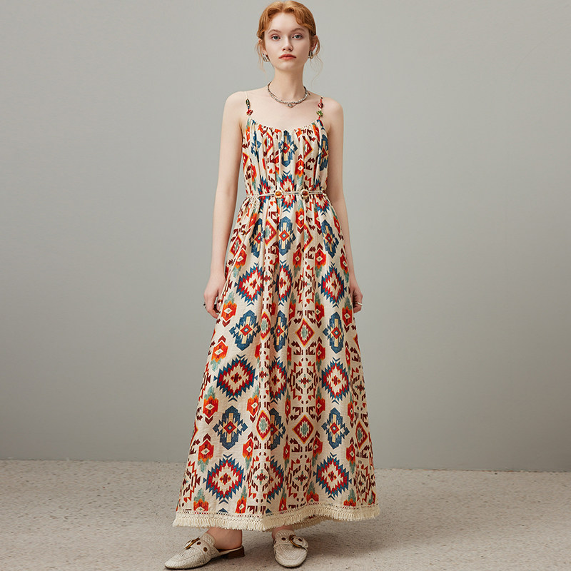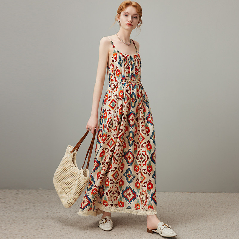 dfvc波西米亚吊带连衣裙女2025年夏季 海边度假风沙滩长裙大摆 新款