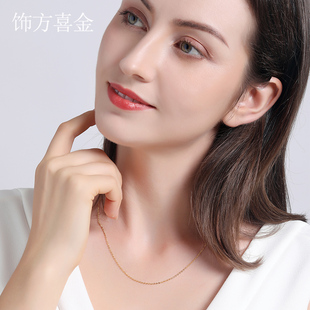 18K金项链女闪O字链AU750彩金玫瑰金黄金素链O字链白金锁骨链单链