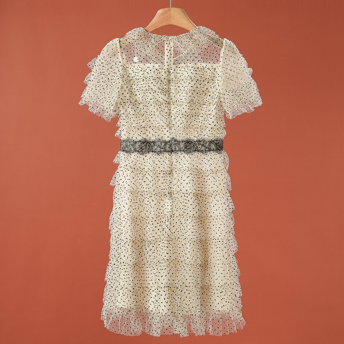 收腰波点蕾丝蛋糕层短袖 夏装 连衣裙888弜 蕾 1199西湖阁老