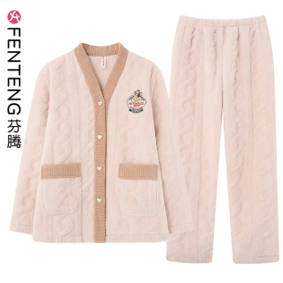 芬腾女士秋冬睡衣珊瑚绒加厚加绒法兰绒保暖家居服2025年新款 冬季