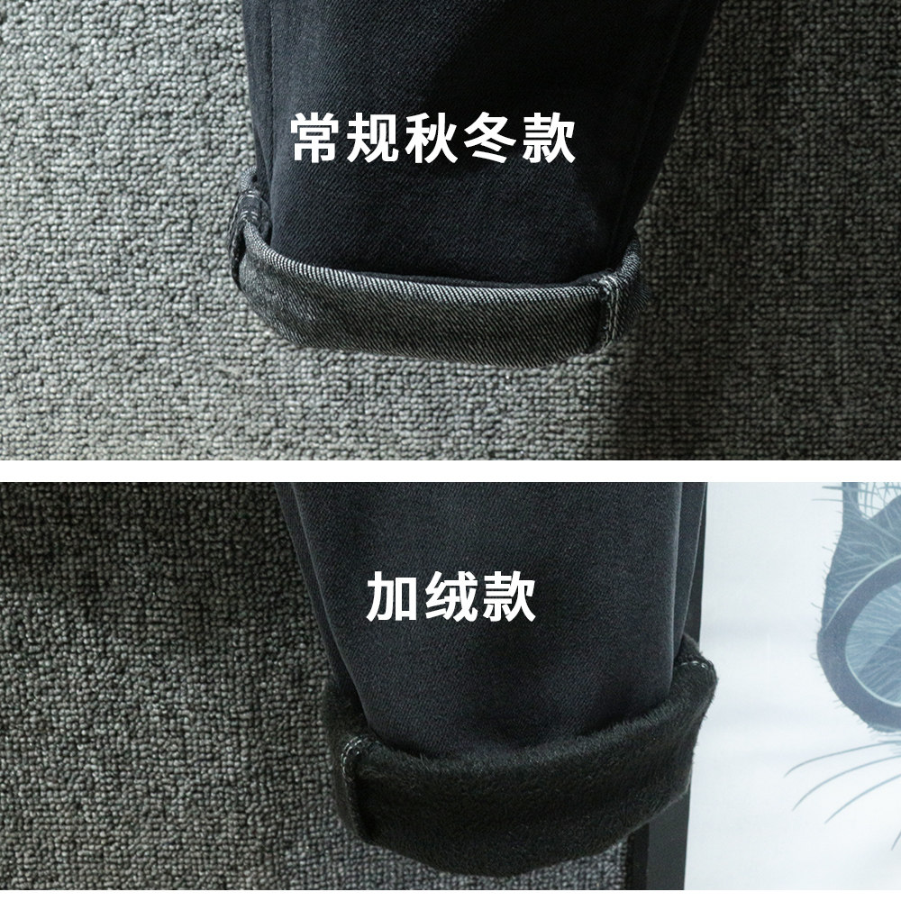 秋冬季 小脚长裤 黑灰牛仔裤 锥形修身 弹力带绒2025 男士 加绒加厚款