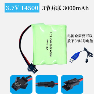 3.7V遥控车挖掘机改装 大容量14500锂电池组3000mAh超长续航充电线