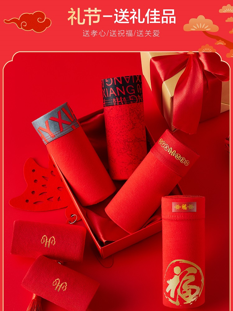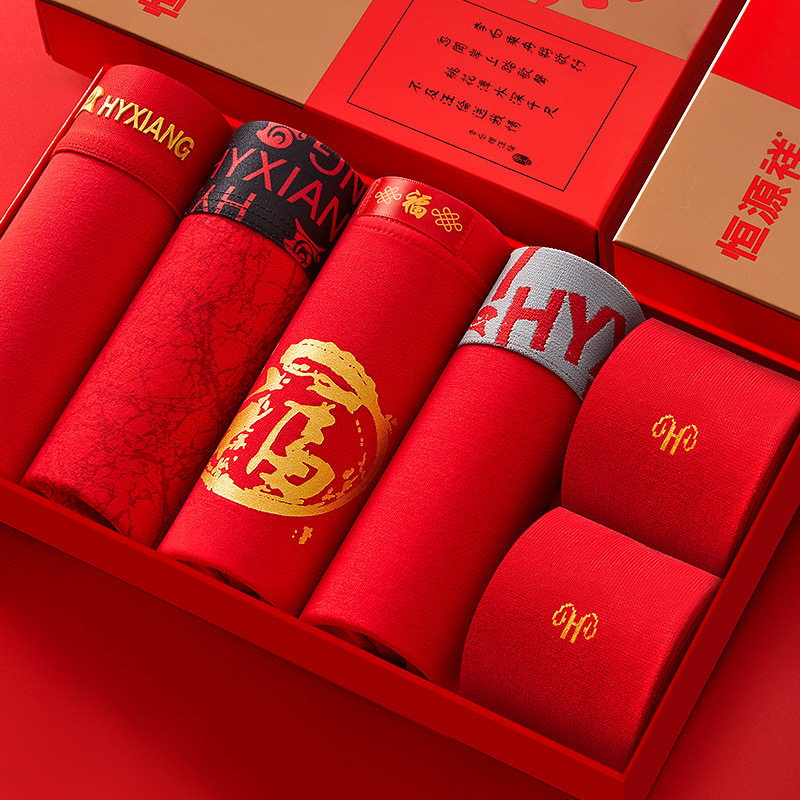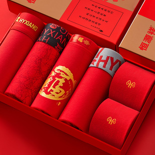 头结婚短裤 恒源祥男士 纯棉四角裤 男本命年大红色属蛇年平角裤 内裤