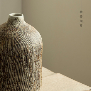 景德镇日式 饰品复古文艺刻纹手工陶瓷水培花瓶酒店摆件 禅意家居装