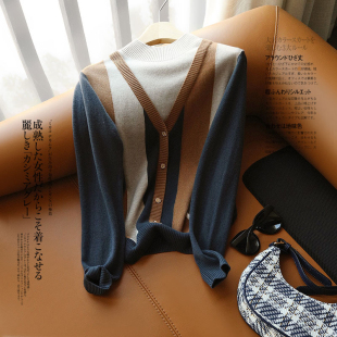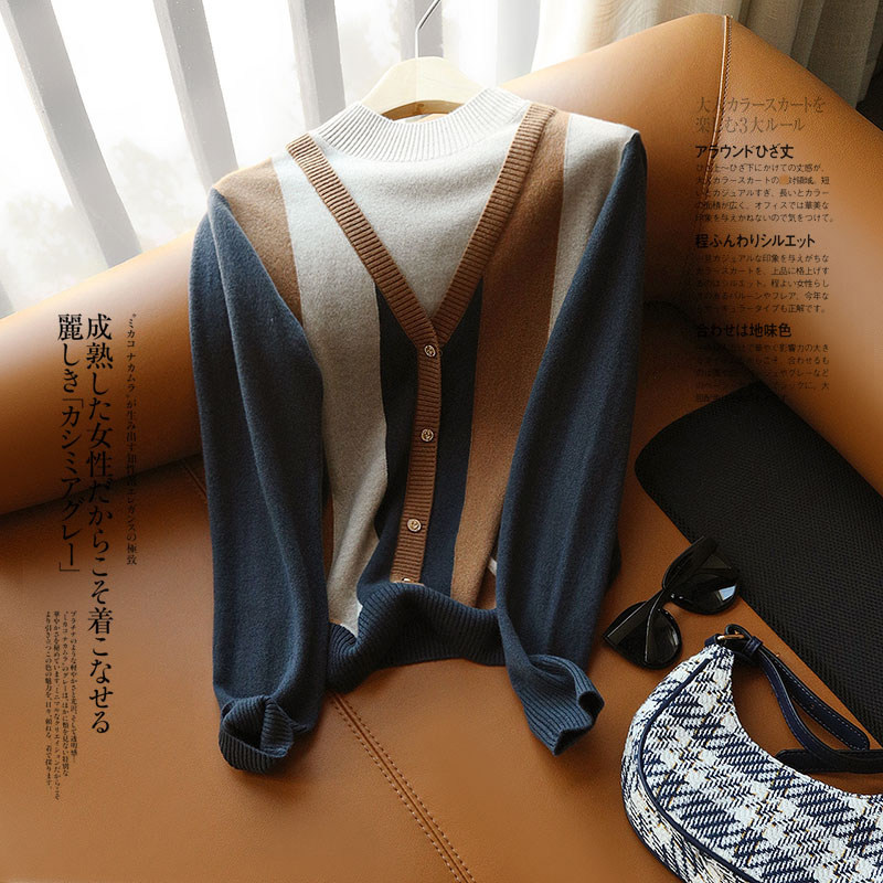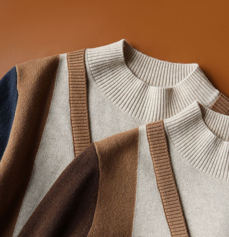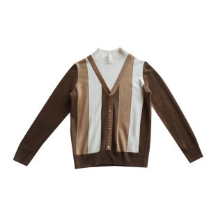 撞色竖条全羊毛针织衫 半高圆领假两件设计 自带段位 洋气有调性