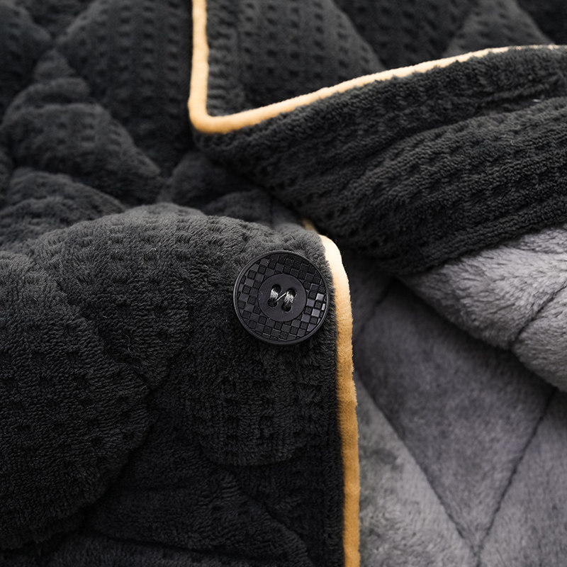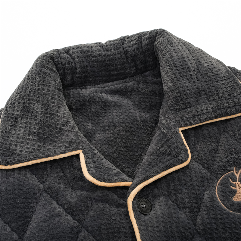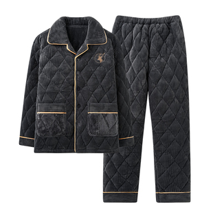 夹棉袄珊瑚绒家居服套装 加绒冬天保暖三层加厚款 冬季 轩靓睡衣男士