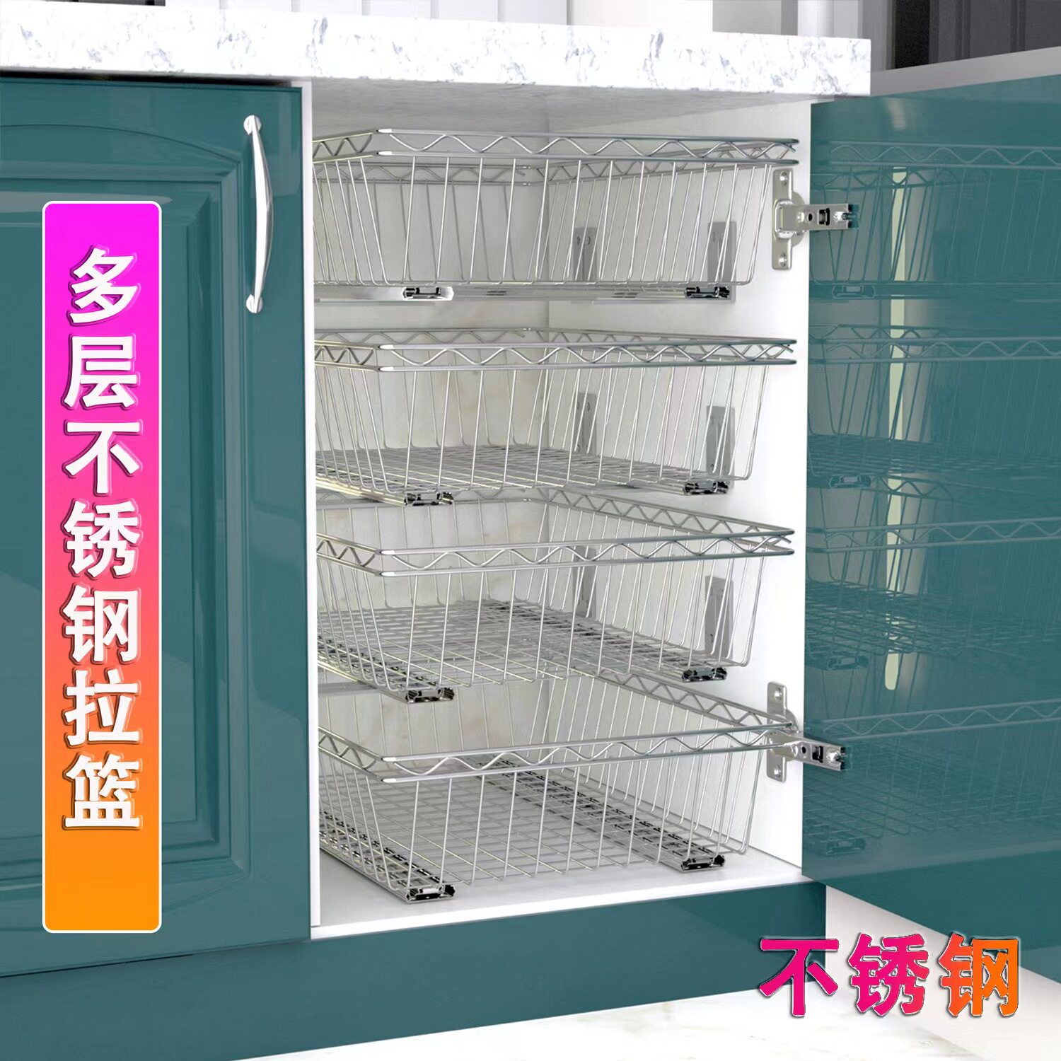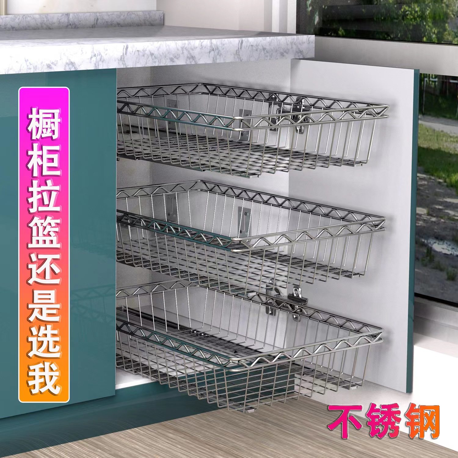 橱柜厨房不锈钢碗柜内置物架拉篮碗碟拉篮抽屉开门碗架置物架碗篮