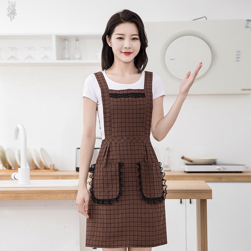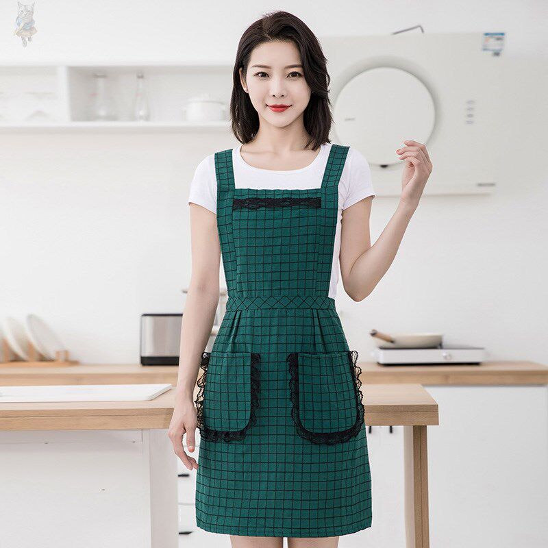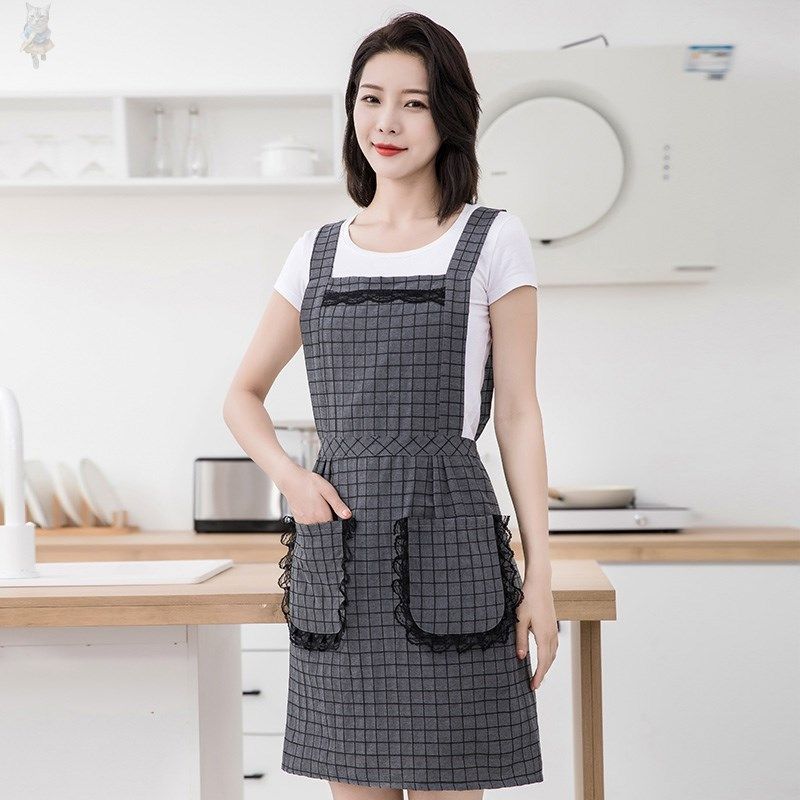 韩版 双层围裙棉布透气防油防污厨房家用上班工作服韩版 时尚