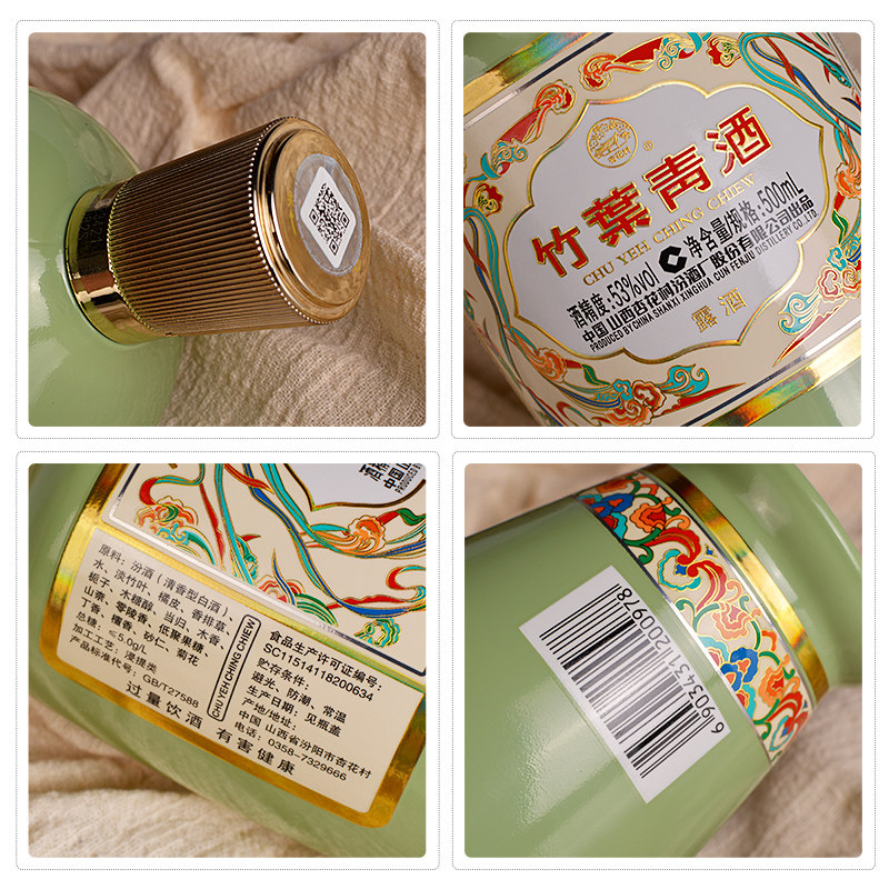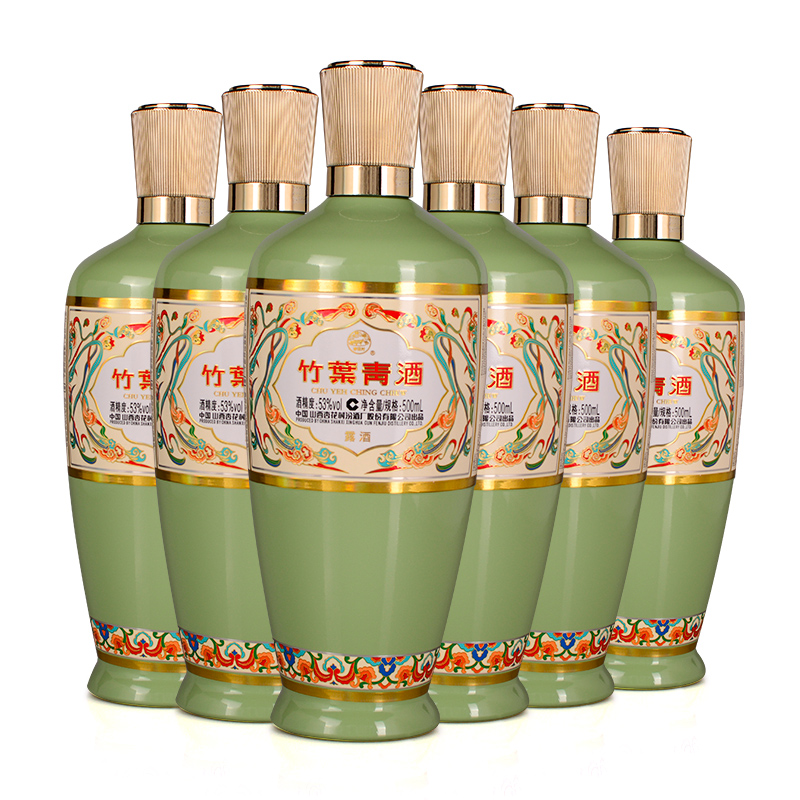 汾酒53度荣耀竹叶青酒500ml 国产杏花村酒露酒 6瓶玻璃瓶套装